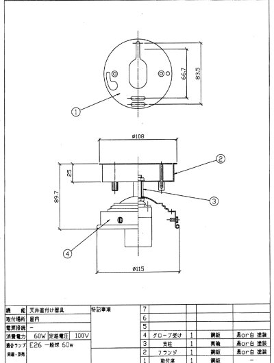 | その他 | E26 60Wまで可 LED電球使用可 器具:鉄に塗装 屋外使用不可 |