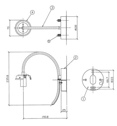 | サイズ | ガラスシェード:φ138mm 壁からの出幅:約260mm 器具:高さ 218mm 壁付け部分φ102mm |