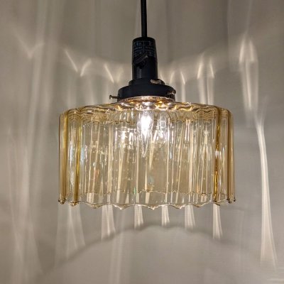縦に線の入る型で作ったアンバーモールのガラスシェード
