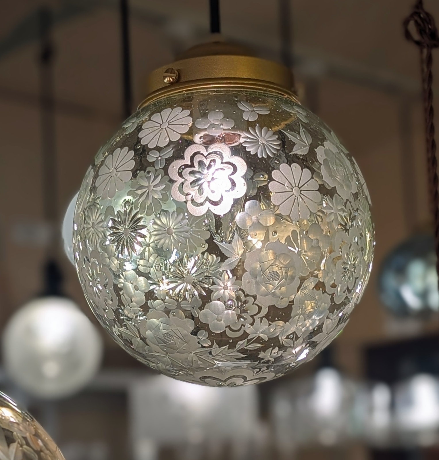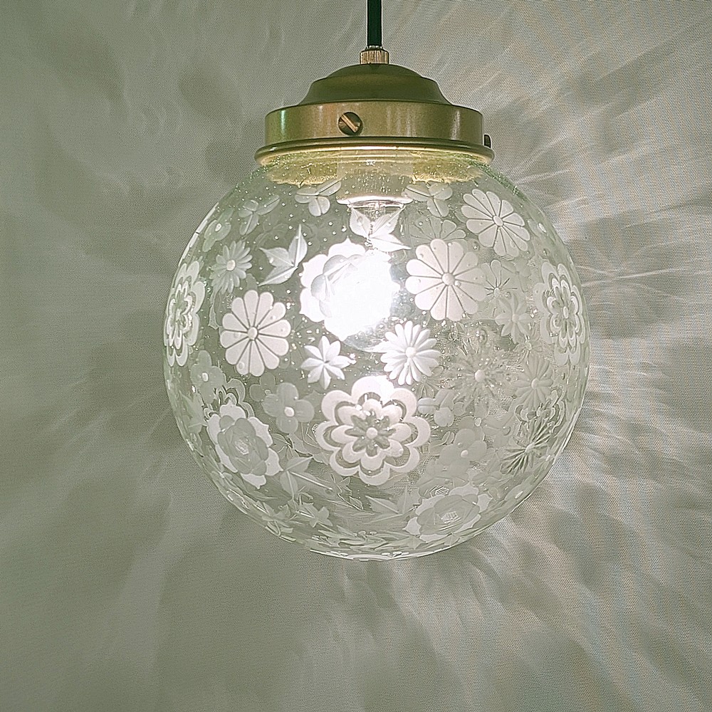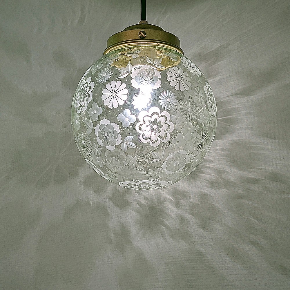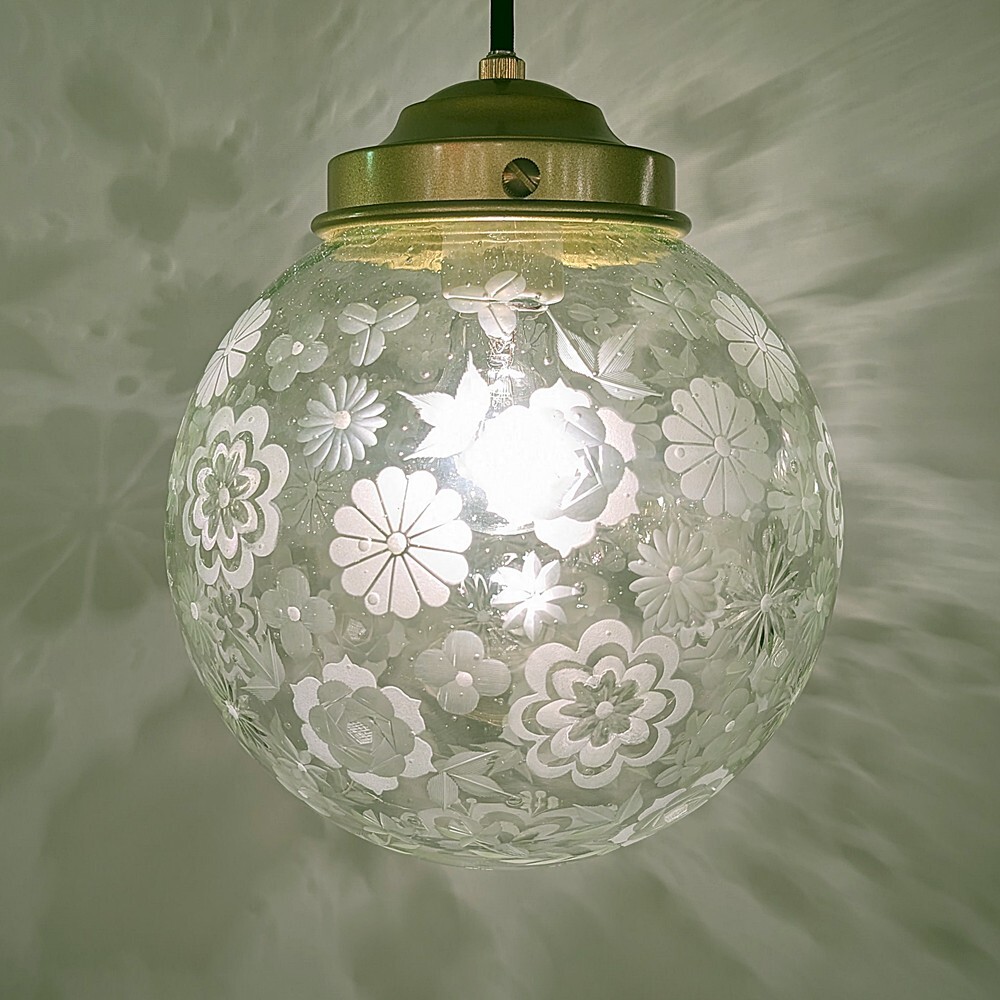 限定品 花いっぱい切子ペンダントライト グリーン泡200mm