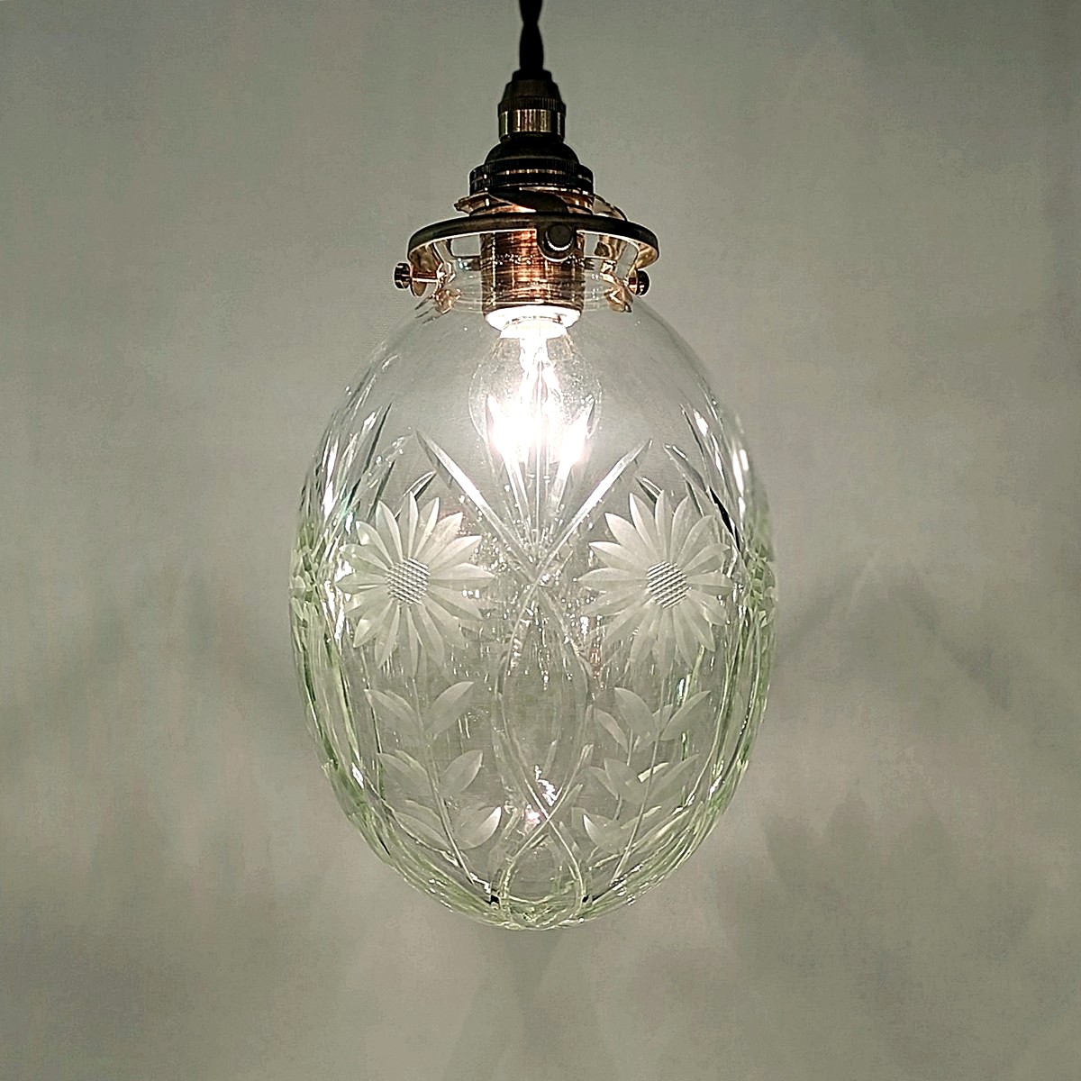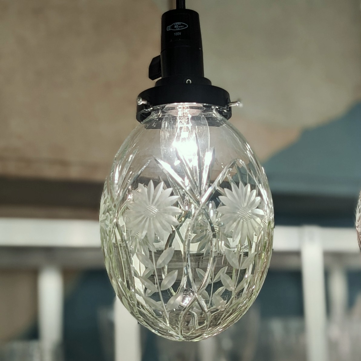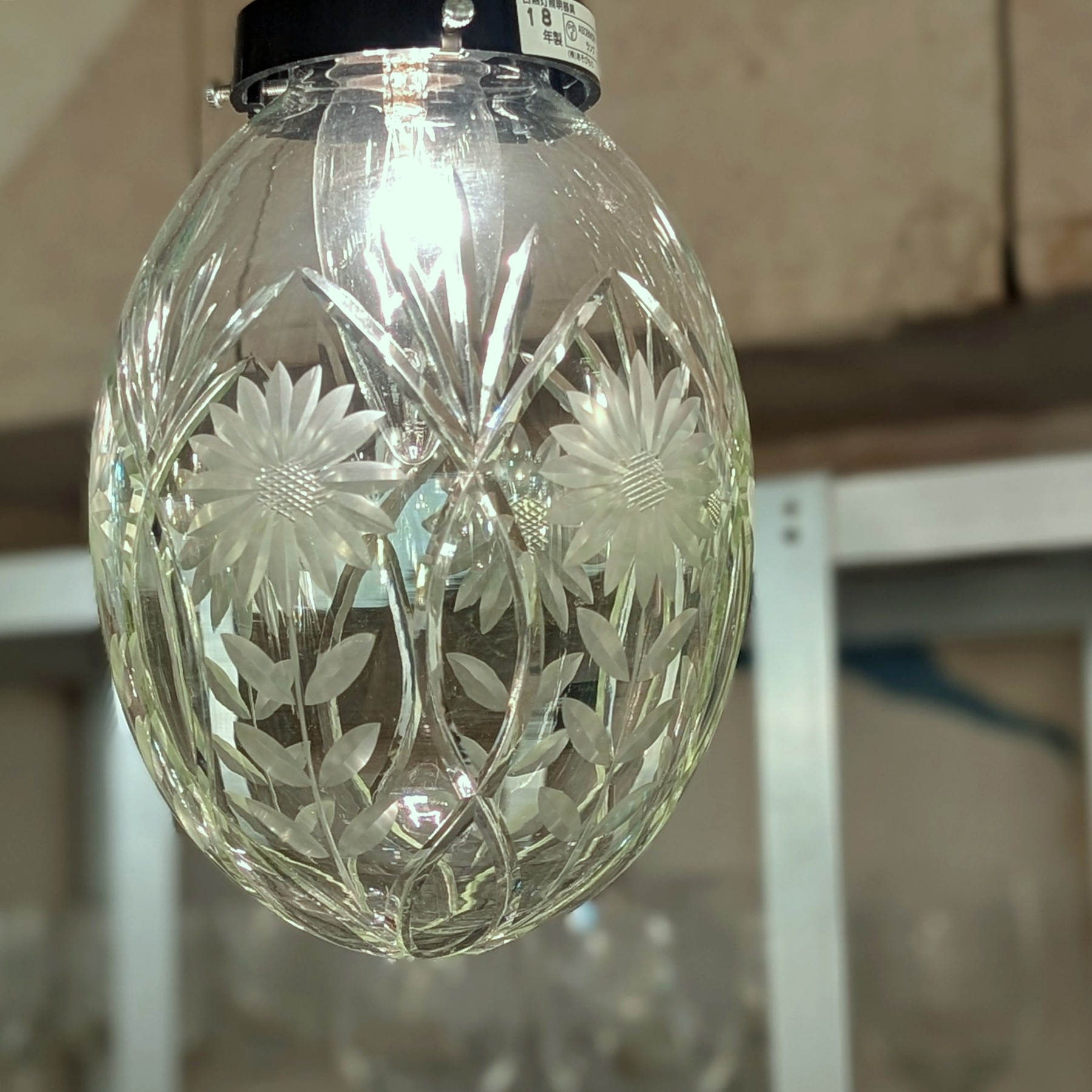 限定品 ひまわり切子 タマゴ型ペンダントライト グリーン