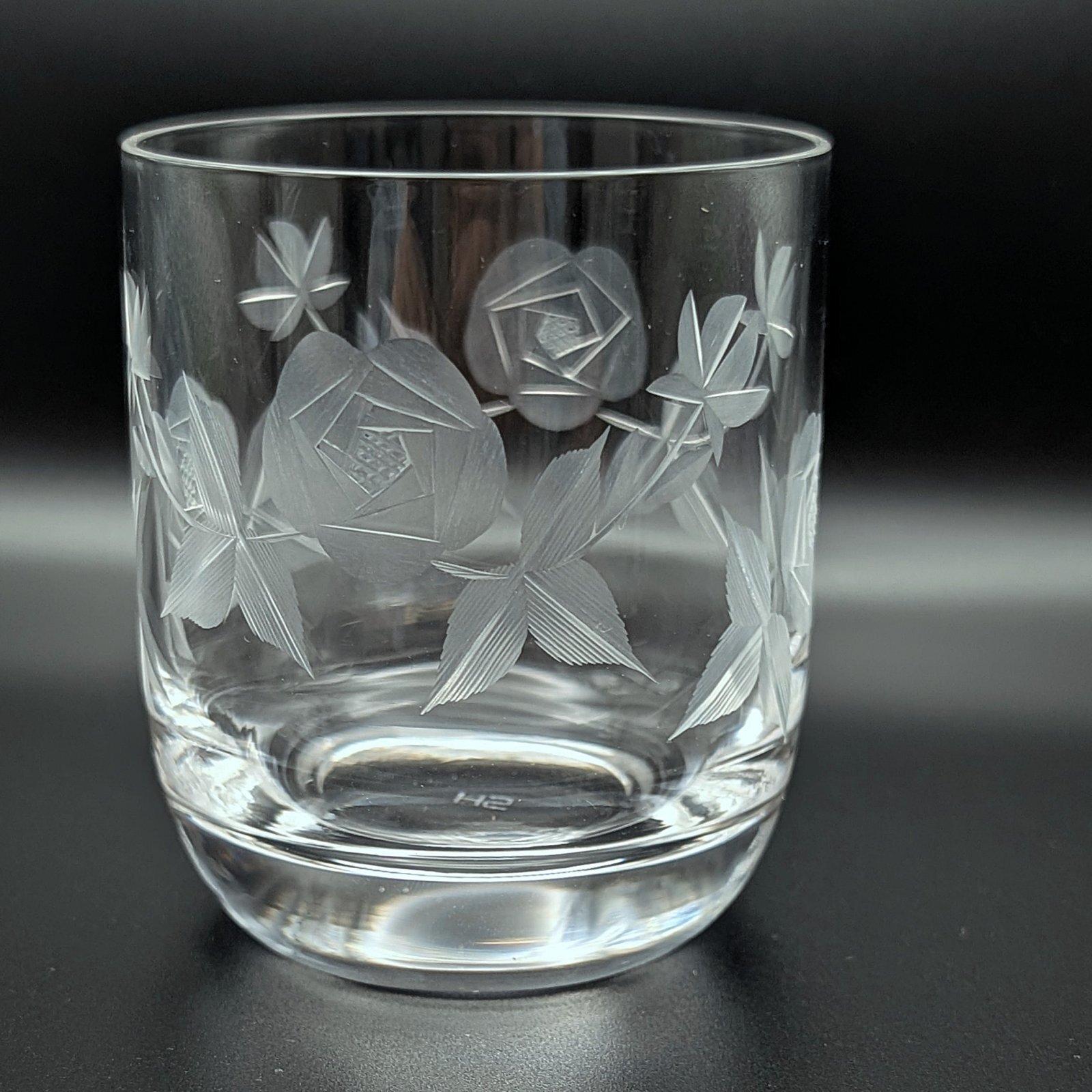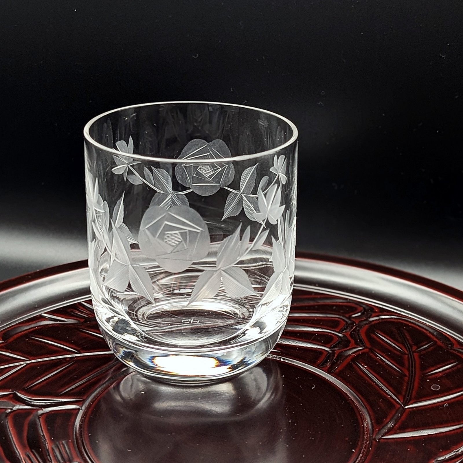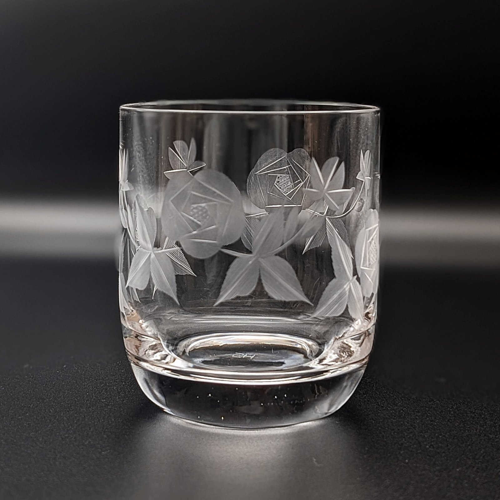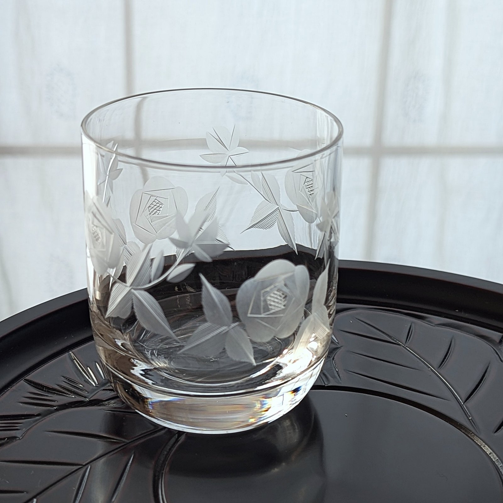 切子職人藤本さんの花模様の切子入りロックグラス。