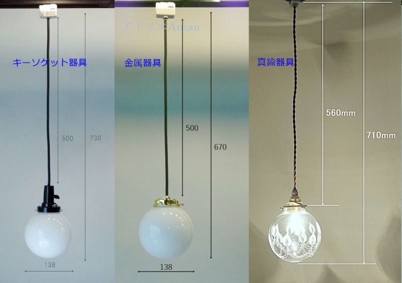 | 色 | ガラス:グリーン キーソケット器具:器具 黒(樹脂) コード黒 金属器具(金色):器具 金色(鉄製) コード黒 器具(黒色):器具 黒色(鉄製) コード黒 真鍮器具:器具 真鍮 コード 茶色 |